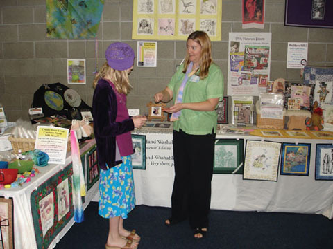 At this faire we not only introduced four brand new Medieval CDs, we also offered finished products for the first time. Fair attendees were able to purchase framed metallic prints, temporary tattoos, wall hangings, greeting cards and more, all featuring images from VVs Victorian Prints.Even with all the new products, CDs were still the best seller by far. Seems most people like to make their own stuff. People were especially inspired by the beautiful, unique wall hangings and a few even plan to make a medieval quilt. We requested pictures of their finished products and will post them on this website as they come in.