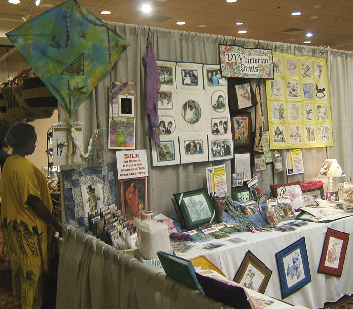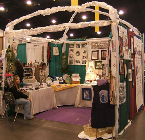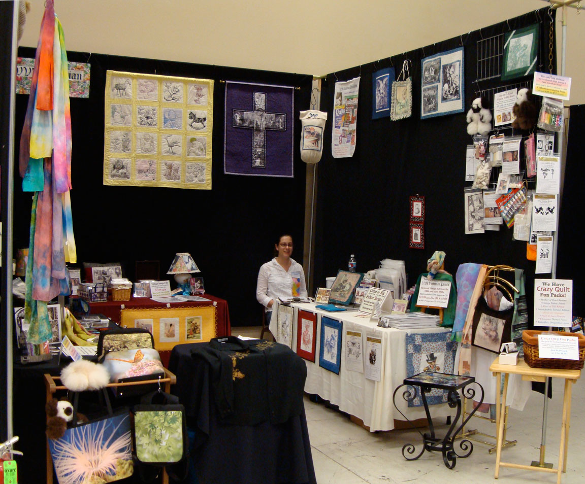 V's Victorian Prints had a booth in this show where we featured our vintage art CDs and cotton & silk fabric sheets.