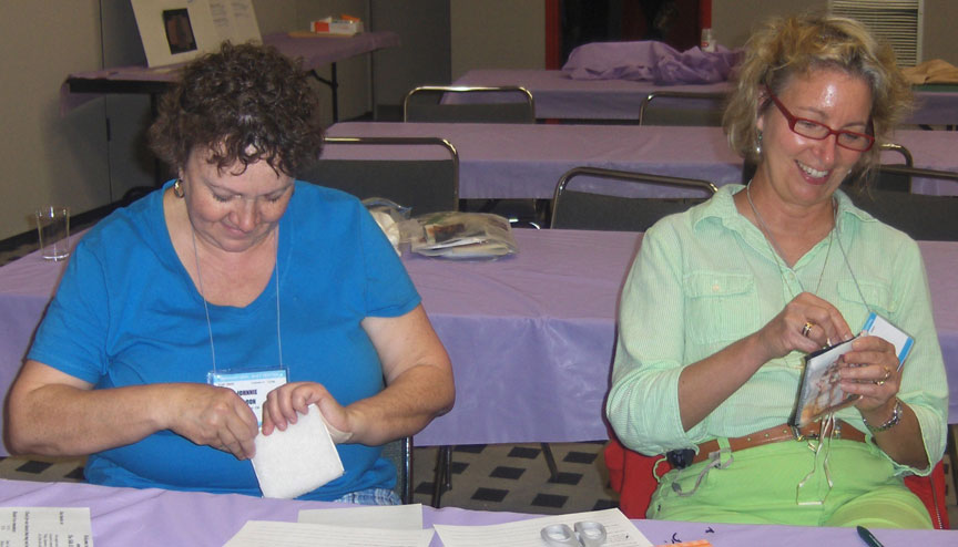 Twenty-one teachers at separate tables around the room offered continuous demonstrations of particular techniques and methods that can take your quiltmaking and/or crafting a step further. Enrollees received a booklet of one-page handouts from each teacher and circulate around the room informally getting lots of new inspiration.