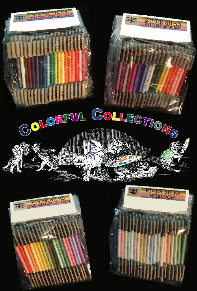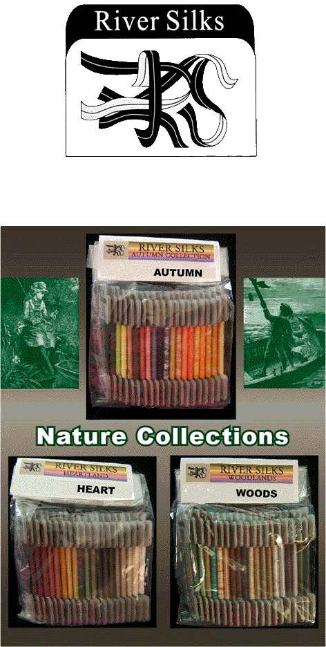 You will find our ribbons are perfect for silk ribbon embroidery. No running, raveling or fraying as you get with most silk ribbons. For the ribbon collections, click on the pictures below for more information and to purchase. We also offer a great book about ribbons: "OOOOOH, THE ESSENTIALS OF NEEDLEPOINT WITH RIVER SILKS." .