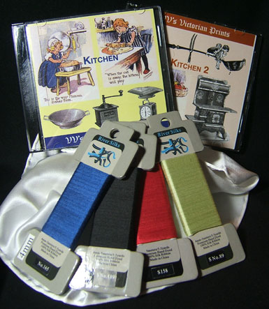 Here are the colors we recommend for this CD. We've printed Kitchen images on fabric to get as close a match as possible. Experiment with your own color combinations! This is just to get you started. You will love these premium 100% silk ribbons hand-dyed in China by a master craftsman. We use them mostly for fabric embellishment, card making and quilting. However, these ribbons are known for their use in knitting, crocheting, jewelry making, punch needle embroidery, hand embroidery. They do not ravel, fray, run or split.