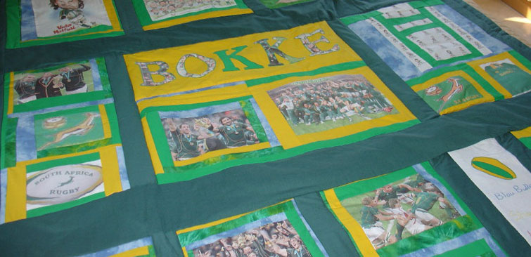 I am an amateur quilter. One of my quilts was for my niece who is a big South African rugby fan, and the other one was for my sister, with photos of
